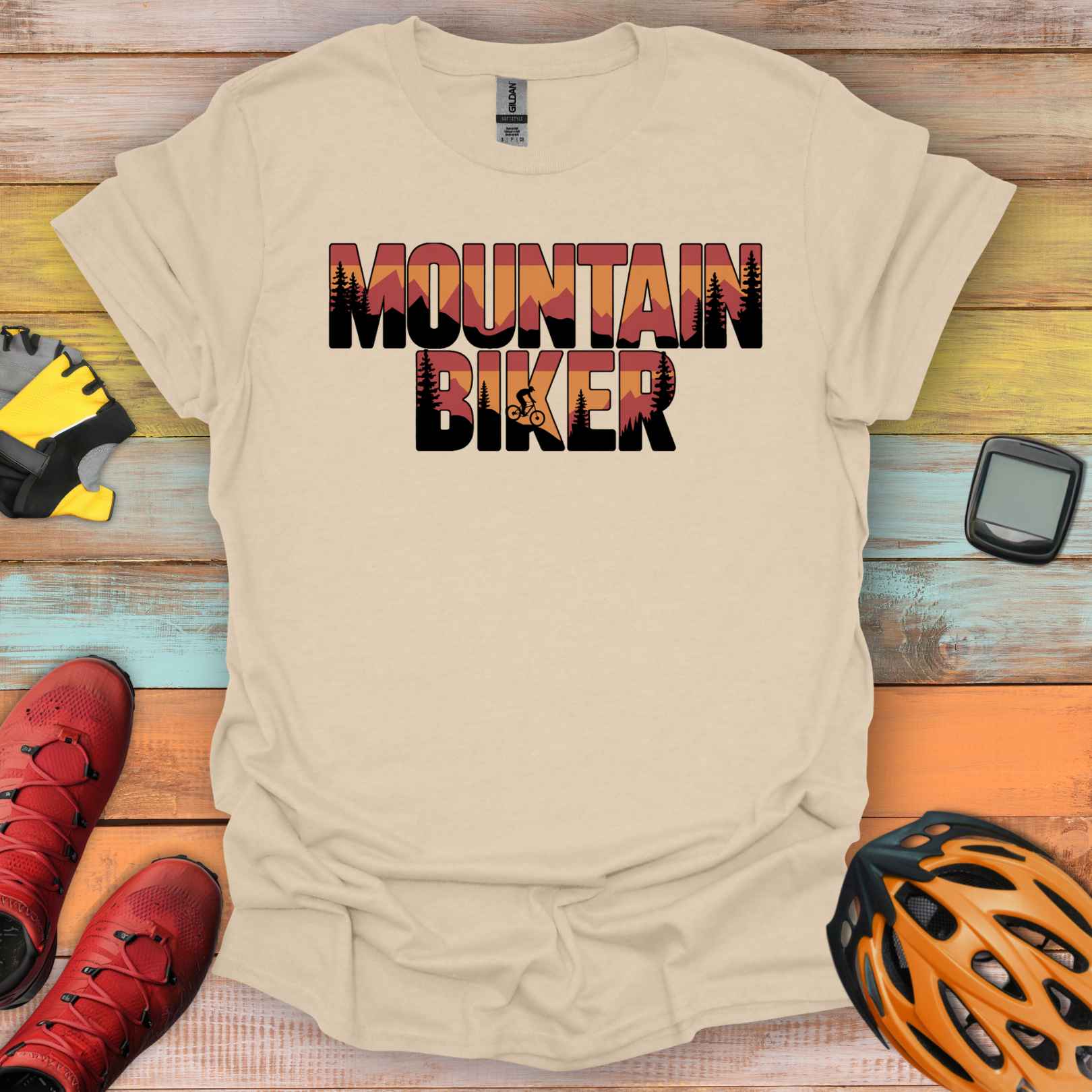Bold layers of orange and red frame your MTB soul. This shirt is made for those who find their peace in the saddle, shredding through forest silhouettes.